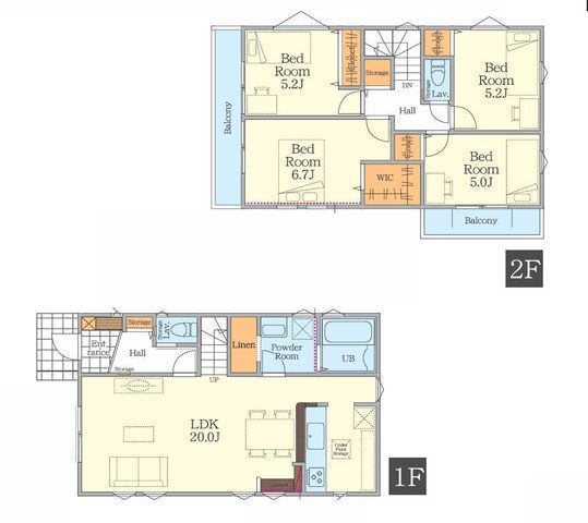 | 部屋 | 1F LDK 20.0帖 、2F 洋 6.7帖 、2F 洋 5.2帖 、2F 洋 5.2帖 、2F 洋 5.0帖 |